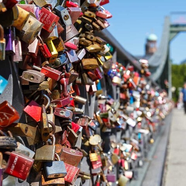Spazieren Sie über diese gusseiserne Brücke mit Panoramablick auf die Skyline und die Liebesschlosstradition der Stadt.