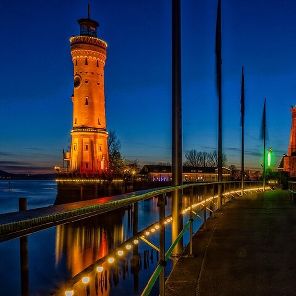 Lindau liegt am Ufer des Bodensees und verbindet historischen Charme mit zeitgemäßem Komfort. Ihre Reise beginnt am ikonischen Mangturm, einem mittelalterlichen Wachturm, der einst als Teil der historischen Befestigungsanlagen der Stadt Wache stand. Bewundern Sie von dort aus den Postkarten-perfekten Hafen, umrahmt von zwei der berühmtesten Wahrzeichen Lindaus – dem eleganten Leuchtturm und der hoch aufragenden sechs Meter hohen Bayerischen Löwenstatue. Spazieren Sie über die Maximilianstraße, einst das geschäftige Herz der Lindauer Zünfte und des Handels, und bestaunen Sie das markante gotische Alte Rathaus, dessen Fassade reich mit bunten Fresken geschmückt ist. Während Sie durch Kopfsteinpflastergassen, belebte Plätze und die malerische Seepromenade schlendern, erweckt Ihr privater Fortgeschrittener mit spannenden Geschichten und faszinierenden Legenden Jahrhunderte lokaler Geschichte zum Leben.