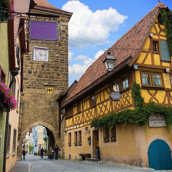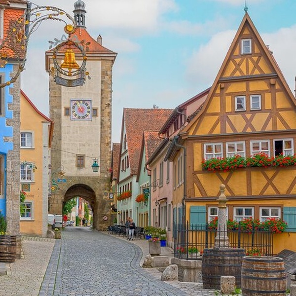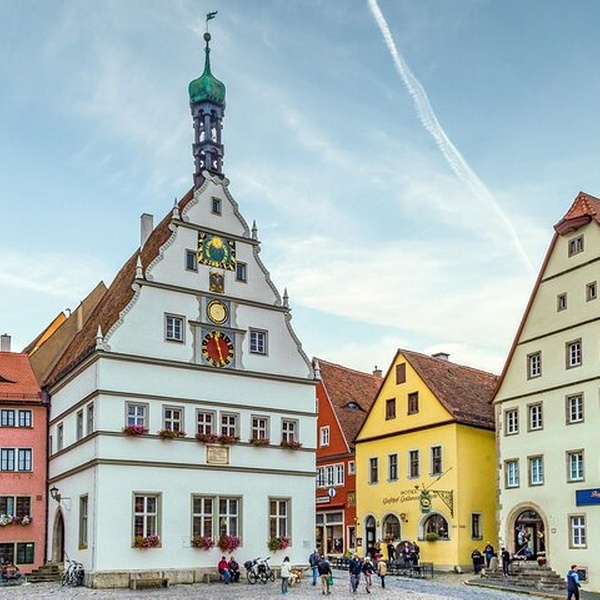 Tauchen Sie ein in die Vergangenheit und erleben Sie den mittelalterlichen Charme von Rothenburg ob der Tauber, einer der besterhaltenen historischen Städte Deutschlands. Rothenburg ob der Tauber – was so viel wie „über der Tauber“ bedeutet – ist ein Muss entlang der Romantischen Straße und wird oft als deutsche Märchenstadt gefeiert. Mit seiner bezaubernden Atmosphäre fühlt es sich an wie ein Schritt in ein mittelalterliches Märchenbuch. Bewundern Sie den 50 Meter hohen Rathausturm und entdecken Sie die faszinierenden Geschichten dahinter. Spazieren Sie durch Plönlein, das postkartenfeste Wahrzeichen der Stadt. Dieser dreieckige Platz, der in Popkultur und Geschichte verewigt ist, hinterlässt bei allen Besuchern einen bleibenden Eindruck. Erkunden Sie die Jakobskirche, die Heimat des atemberaubenden Heilig-Blut-Altars von Tilman Riemenschneider, ein wahres Meisterwerk der Handwerkskunst. Bei einem Spaziergang durch die Kopfsteinpflasterstraßen und Verteidigungsmauern der Stadt aus dem 14. Jahrhundert werden Sie verstehen, warum Rothenburg ein unvergessliches Reiseziel ist, das das Herz jedes Reisenden erobert.