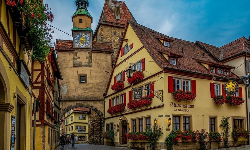 Bewundern Sie den postkartenperfekten Blick auf Rothenburg mit seinen berühmten Fachwerkhäusern.