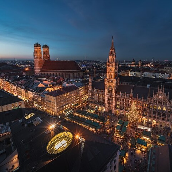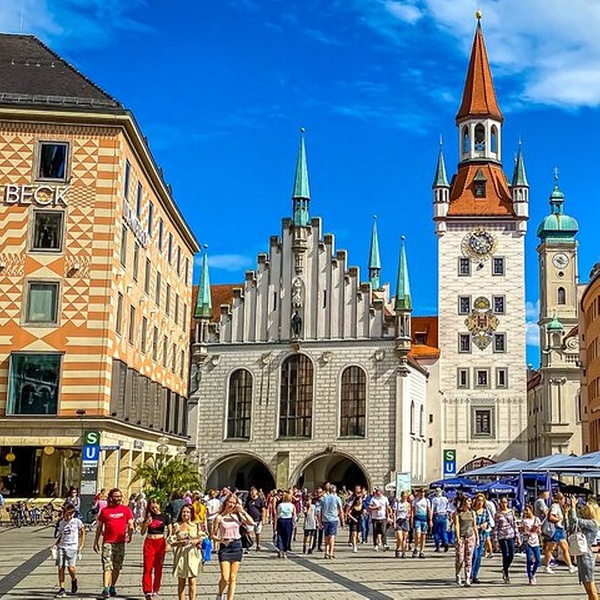 **Marienplatz** ist der zentrale Platz Münchens, umgeben von historischen Sehenswürdigkeiten. Es beherbergt das **Neue Rathaus** mit seinem berühmten Glockenspiel und das **Alte Rathaus** mit seinem mittelalterlichen Charme. Es ist ein pulsierendes Zentrum für Touristen und Einheimische und beherbergt Märkte, Veranstaltungen und kulturelle Feste.