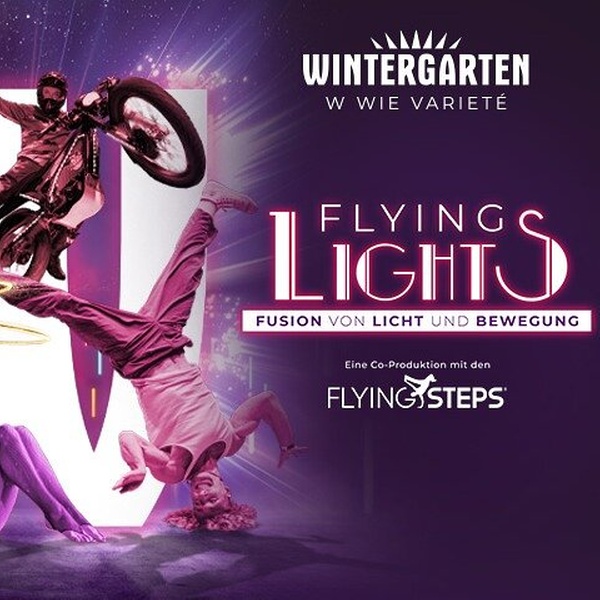 Wintergarten-Regisseur Rodrigue Funke und Vartan Basil von den Flying Steps werden gemeinsam mit dem Choreografen Jeffrey Jimenez in der neuen Show „FLYING LIGHTS“ Streetstyle, Breakdance und die Eleganz des Varietés ein weiteres Mal verbinden. Hierbei wird das Thema Licht in all seinen Facetten das verbindende Thema bilden. Die Tänzer und Artisten werden die Bühne des Wintergartens einerseits zu bebenden Beats mit Feuer und neuester LED-Technik bespielen – und andererseits zu live gespielten Celloklängen poetische Momente kreieren. Auch artistisch bietet „FLYING LIGHTS“ erstklassige Leckerbissen. Die internationalen Varieté-Stars und die kongenialen, furiosen Tänzer der Flying Steps versprechen einen actionreichen Abend, bei dem sowohl die Stimmung als ganz gewiss auch der Adrenalinpegel im Publikum nach oben schnellen wird. Während der Show werden stroboskopische Lichteffekte eingesetzt, die für lichtempfindliche Personen (z.B. bei Epilepsie) ungeeignet sein können.