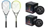 Zwischen 5 Top-Squashschlägern mit Bällen in 4 verschiedenen Geschwindigkeiten wählen