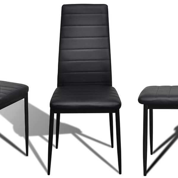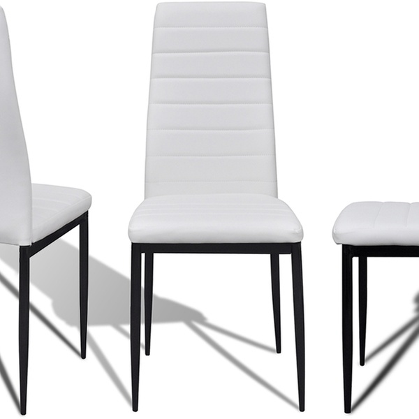 Attraktive Esszimmer-Garnitur mit Tischplatte aus gehärtetem Glas und bequemen Stühlen im schwarzen oder weißen Leder-Look