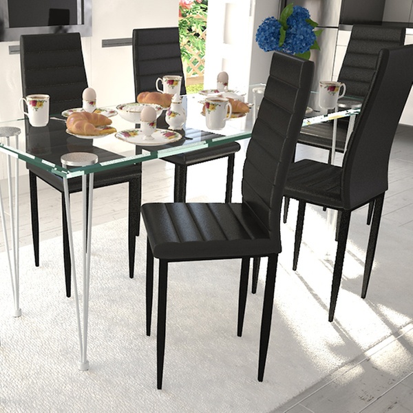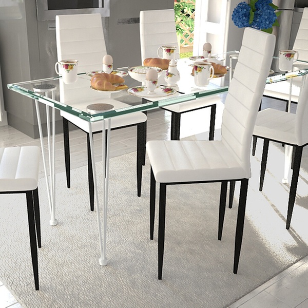 vidaXL Esszimmer-Glastisch mit Stühlen in Schwarz oder Weiß - folgende Optionen stehen zur Auswahl: