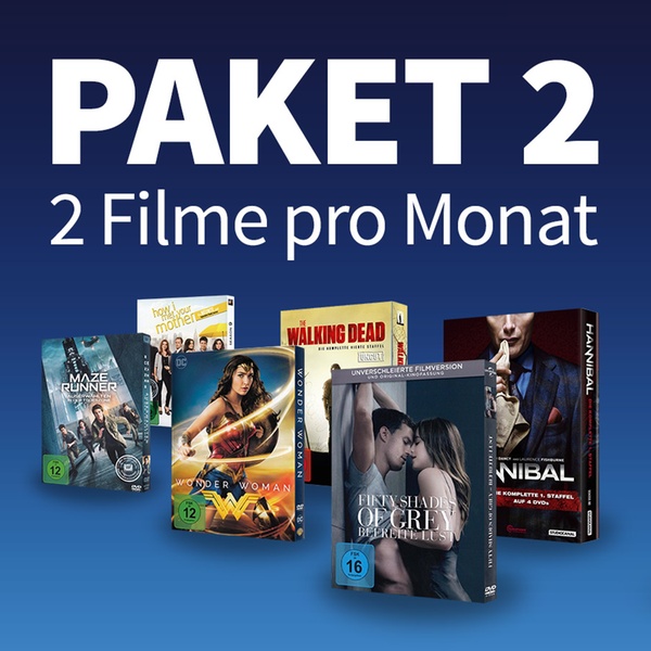 3 Monate lang bestes Filmvergnügen im Abo mit 2 oder 4 Filmen im Austausch pro Monat, jeweils bequem per Post direkt nach Hause