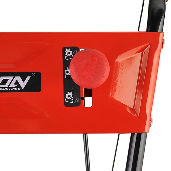 - Die Wurfrichtung und Wurfweite kann direkt am Auswurfschacht verstellt werden