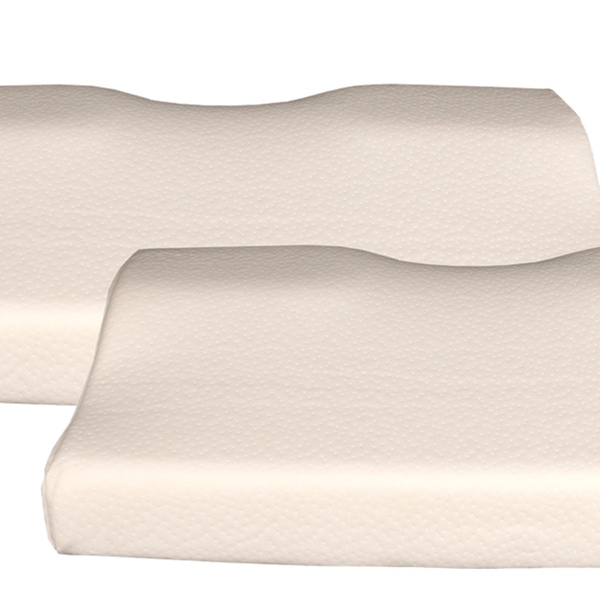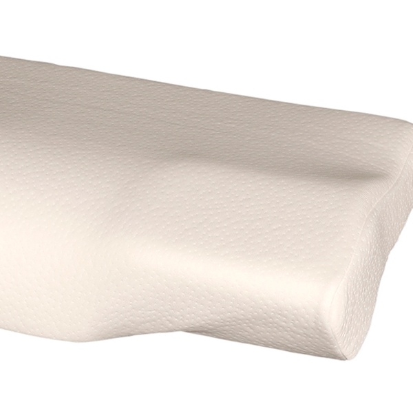 Dieses Kissen hat eine gute Passform für den Nacken, zwei verschiedene Höhen und einen abnehmbaren Polyester-Bezug