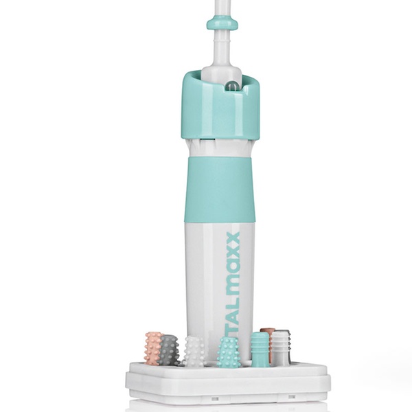 - Lieferumfang: 1 x Hauptgerät, 4 x Ösen-Aufsatz, 4 x Noppen-Aufsatz, 4 x Rillen-Aufsatz, 1 x Ständer mit Transportdeckel