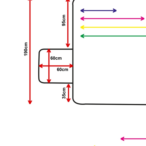 • Sessel 180 x 190 cm: Rückenlehne (ohne Armlehnen) 60 cm + 2 Armlehnenbezüge je 60 x 60 cm