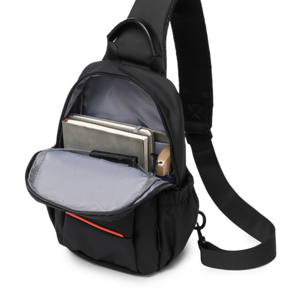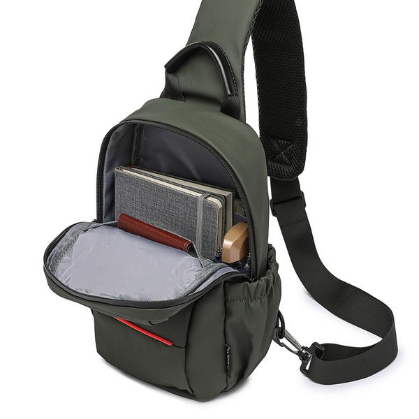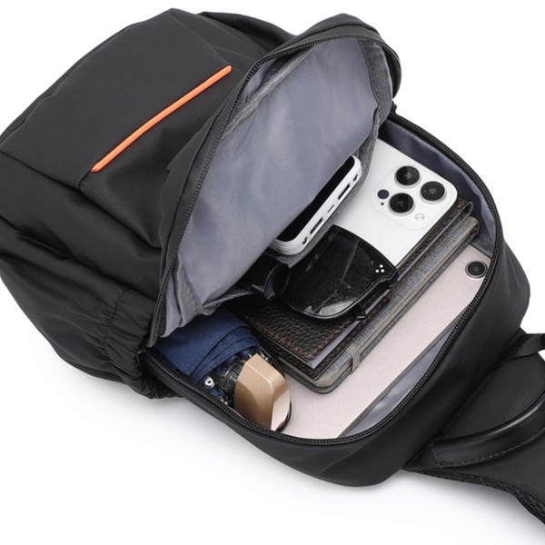 Diese Umhänge-Brusttasche mit einem versteckten Reißverschlussfach kann Schutz für wertvolle Gegenstände beim Unterwegs-Sein bieten