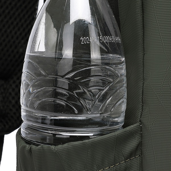 - Seitliche Taschen für Wasserflaschen oder Schirme