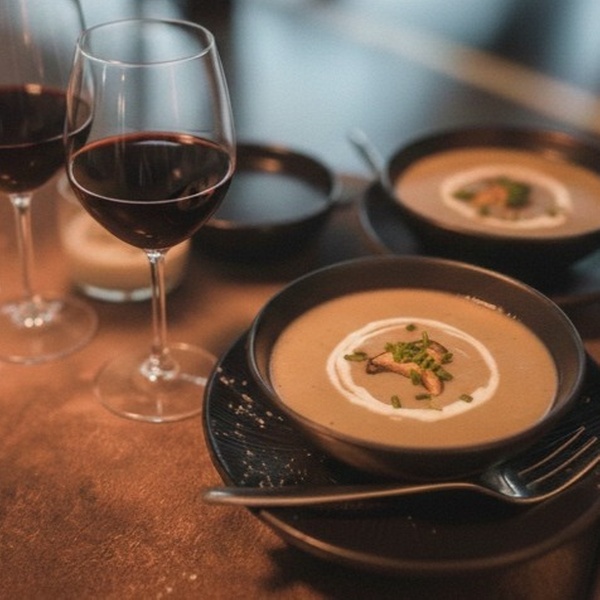 - 1. Gang: Suppe nach Wahl (z.B Kürbiscremesuppe, Tomatencremesuppe)