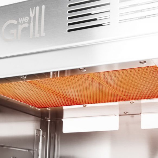 - Verbauter Infrarot-Keramikbrenner für Oberhitze bis zu 850° C