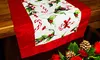 Setzt festliche Akzente: Ein eleganter Tischläufer mit klassischen Weihnachtsmotiven in lebendigen Farben für eine stimmungsvolle Dinner-Atmosphäre