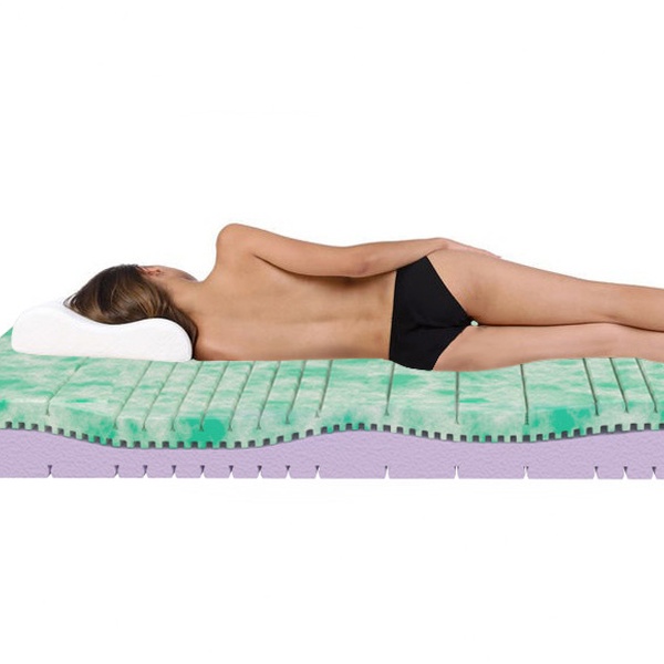 Ca. 20 cm hohe Matratze mit klimaregulierendem Belüftungssystem und hoher Druckentlastung durch speziellen Visco-elastischen Schaumstoff