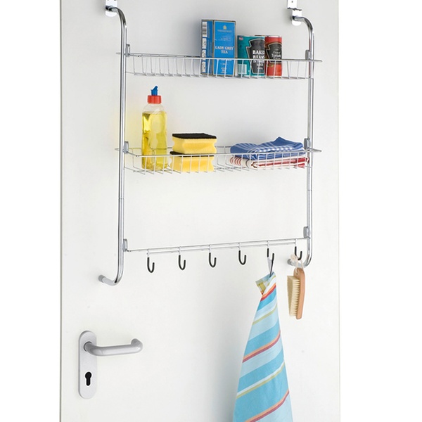 Tür- oder wandmontierbares Türregal, das sich optimal für die Ablage und Organisierung von mehreren unterschiedlichen Utensilien eigent