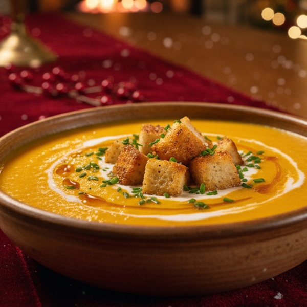 Kürbis-Suppe (vegan) – Cremige Kürbissuppe , verfeinert mit knusprigen Croutons – ein wärmender Genuss für Herbsttage