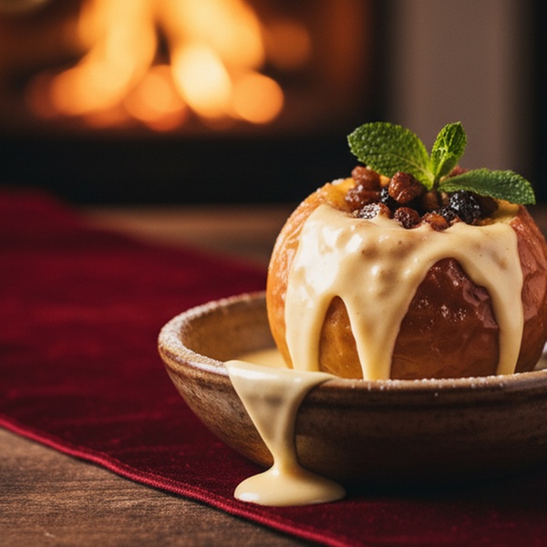 1 halber Bratapfel mit Vanillesauce – ein süßer Abschluss zum Dahinschmelzen