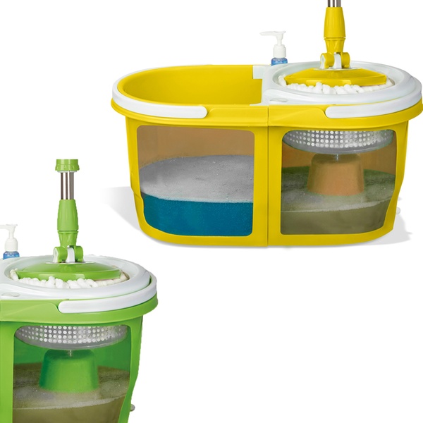 - Set-Umfang: Doppel-Schleuder-Mopp, 2 oder 5 Aufsätze, Doppel-Eimer für sauberes und schmutziges Wasser (mit Auswringschleuder und Pedal)