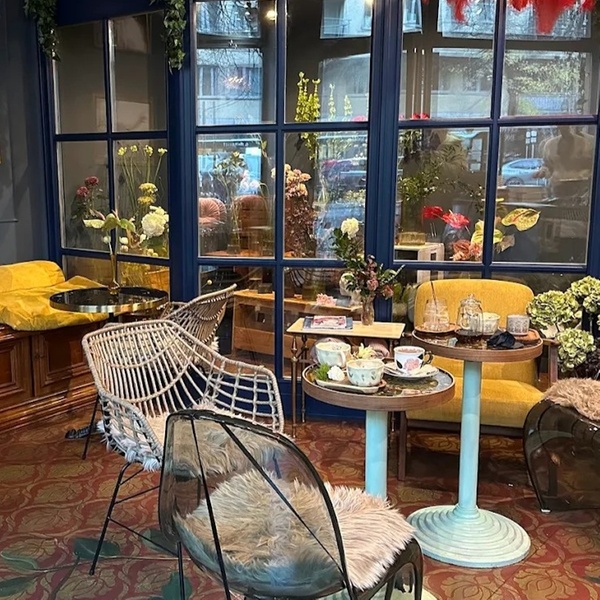 Süßer Moment in Berlin: Genieße aromatischen Kaffee oder Tee und ein Stück hausgemachten Kuchen im zauberhaften, floralen Café-Ambiente