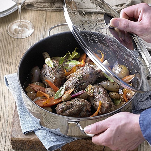 Die Cromargan Schmorpfanne sorgt dank TransTherm-Allherdboden für eine gleichmäßige Wärmeverteilung und ist hitzebeständig bis 180 °C