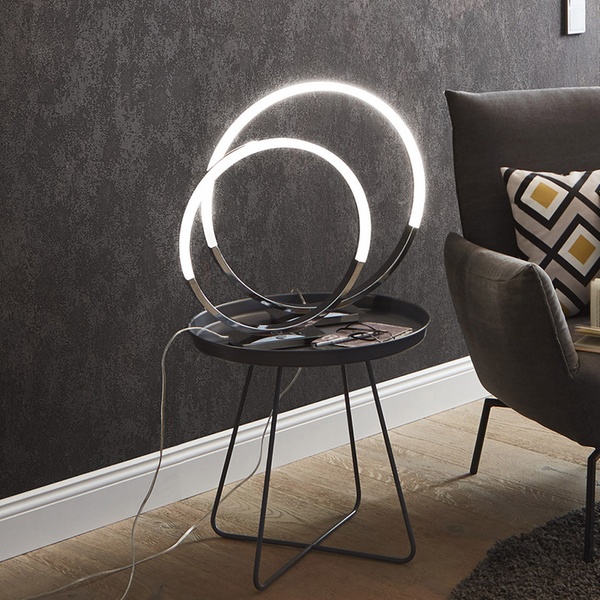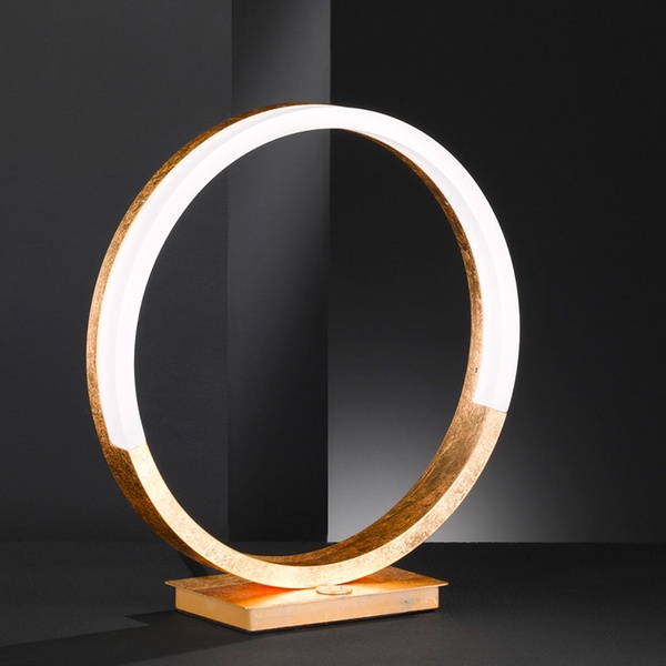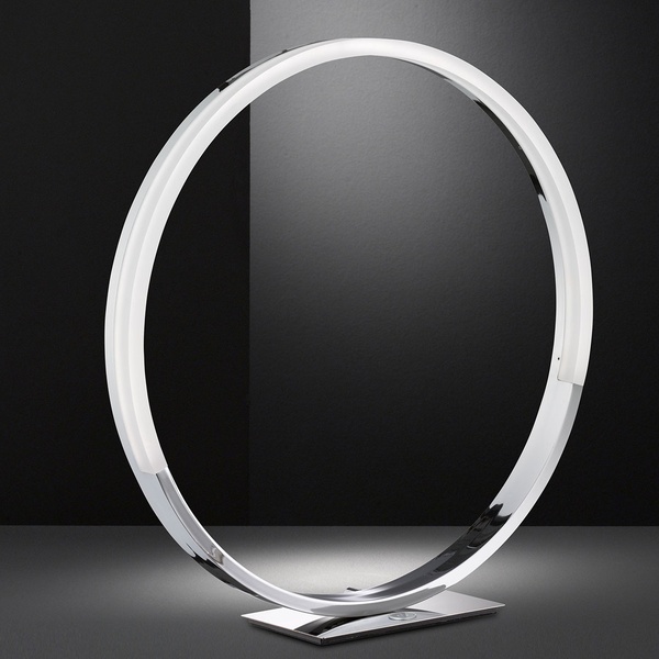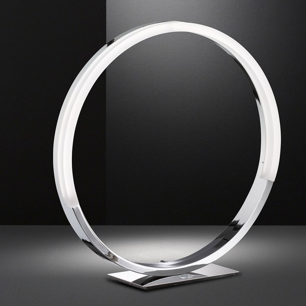 Diese dreistufig dimmbare Tischleuchte wirkt durch den Acrylglasring sowie LED-Beleuchtung elegant und strahlt ein stimmungsvolles Licht aus