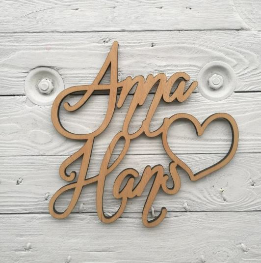 Hast du schon das perfekte Geschenk für einen besonderen Anlass gefunden? Mit unserem personalisierbaren Schriftzug aus Holz wird jeder Moment unvergesslich! Zwei Namen, verbunden durch ein Herz, machen dieses Design zu einem echten Hingucker – schlicht, elegant und mit einer ganz persönlichen Note.