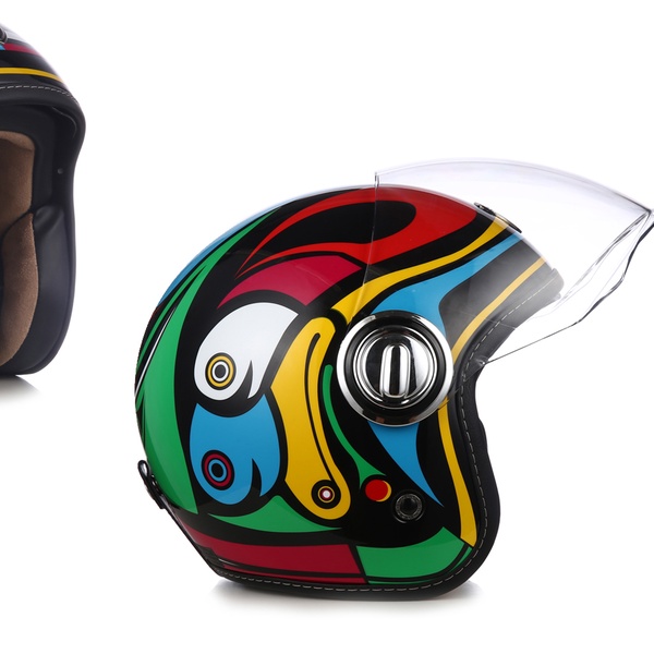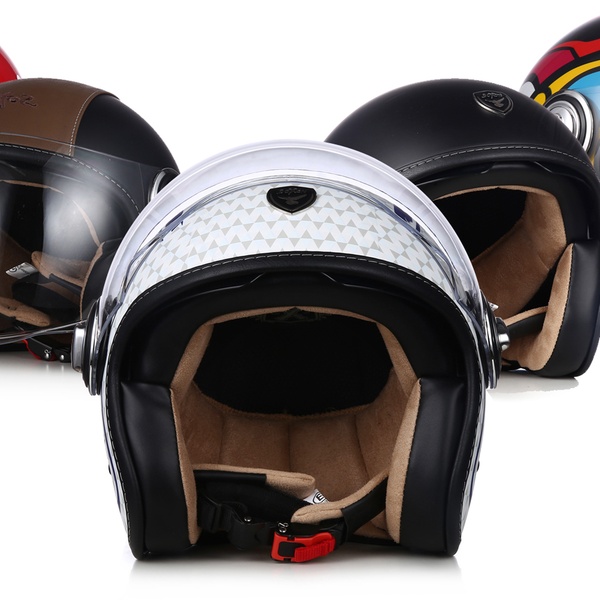 Nur 1200 g leichte Designer-Helme mit einhändig bedienbarem Sicherheitsverschluss sowie kratzfesten Sonnen- und Windvisieren