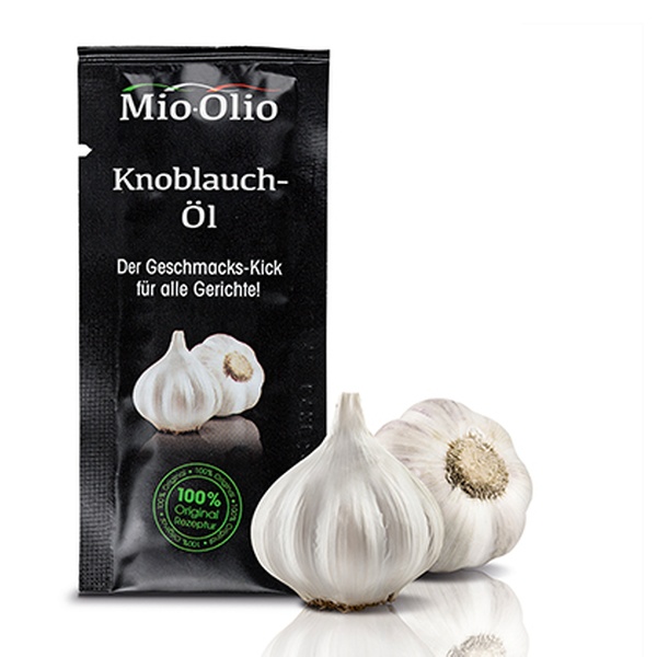 Sowohl würziger Knoblauch als auch pikante Schärfe für verschiedene Gerichte dürfen in einem Haushalt nicht fehlen. Am einfachsten wäre bereits fertig portioniertes Knoblauch-Öl und Chili-Öl … auf diesen Gedanken kam Luigi Stella bei einem Pizza-Essen mit seinem Freund Taner Gecer. Nur ein Jahr später war die Idee umgesetzt und „Mio-Olio“ Knoblauch-Öl sowie Chili-Öl im Portionsbeutel für Hobbyköche und Genießer im Handel erhältlich.