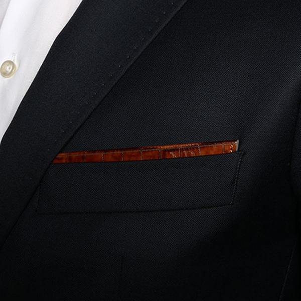 Damit das Einstecktuch richtig sitzt und nicht etwa verrutscht oder herausfällt, hält es der Einstecktuchhalter aus Leder an Ort und Stelle