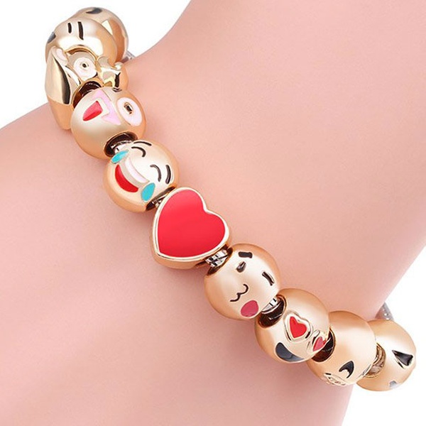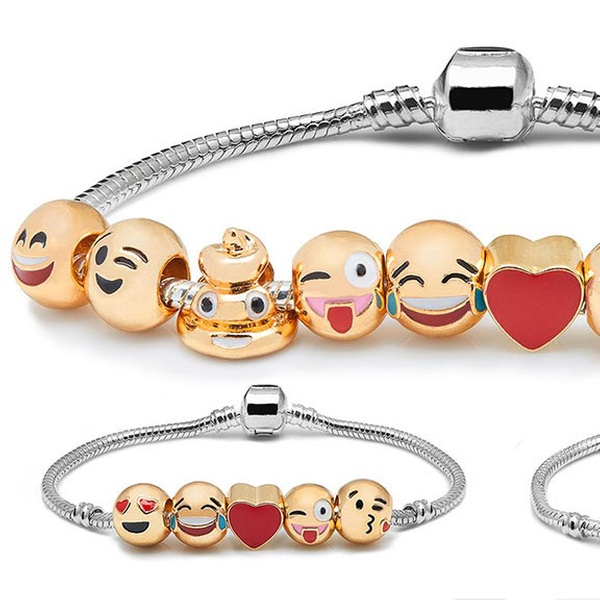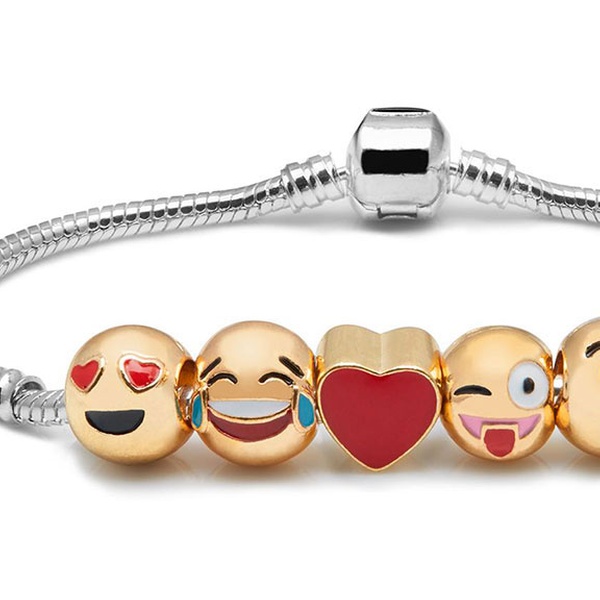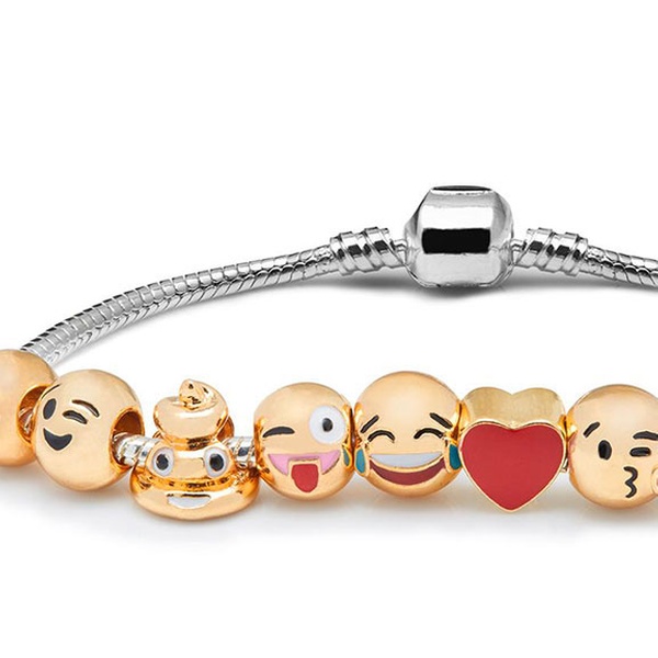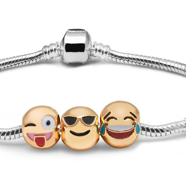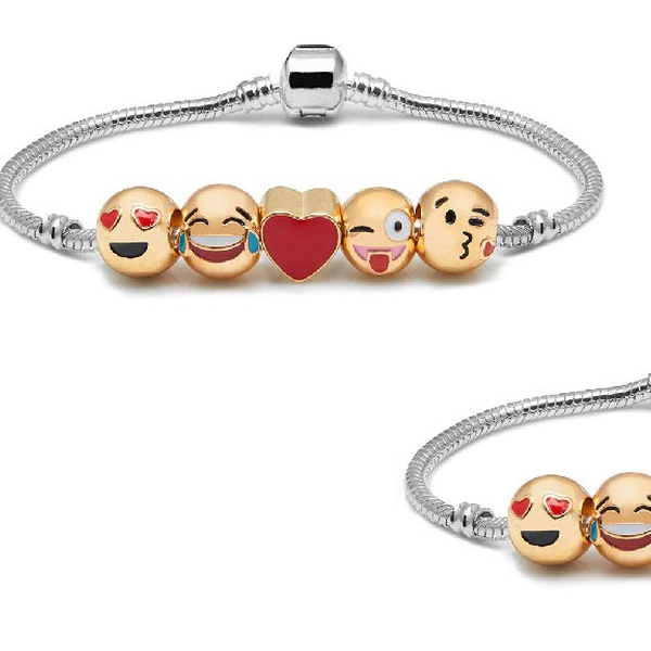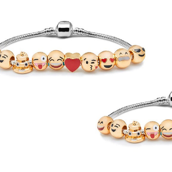 Dieses originelle Emoji Armband mit 5 Charms lässt sich mit anderen Schmuckteilen kombinieren