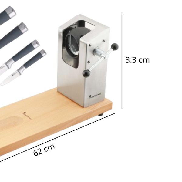 - Inkl. Messer (2,0 mm), Schärfer und Schinkenhalter im Gondel-Stil