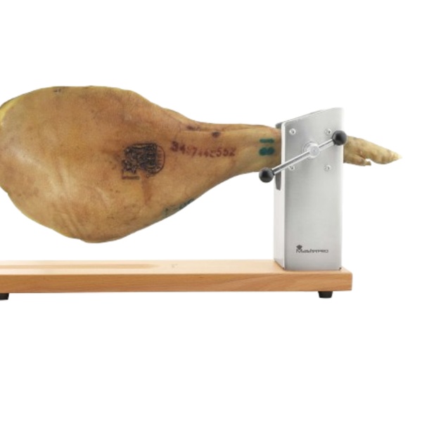 - Schinkenhalter aus Buchenholz mit Edelstahl-Ständer