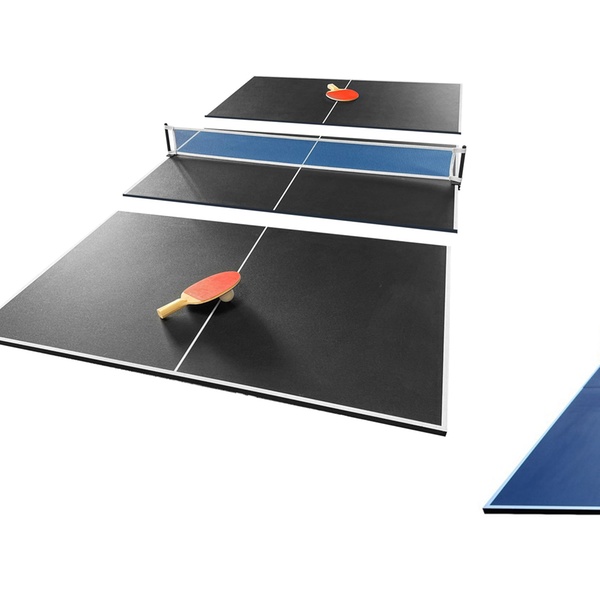 Die faltbare Tischtennis-Tischplatte bietet eine großzügige Spielfläche und lässt sich im Handumdrehen auf bestehenden Tischen montieren