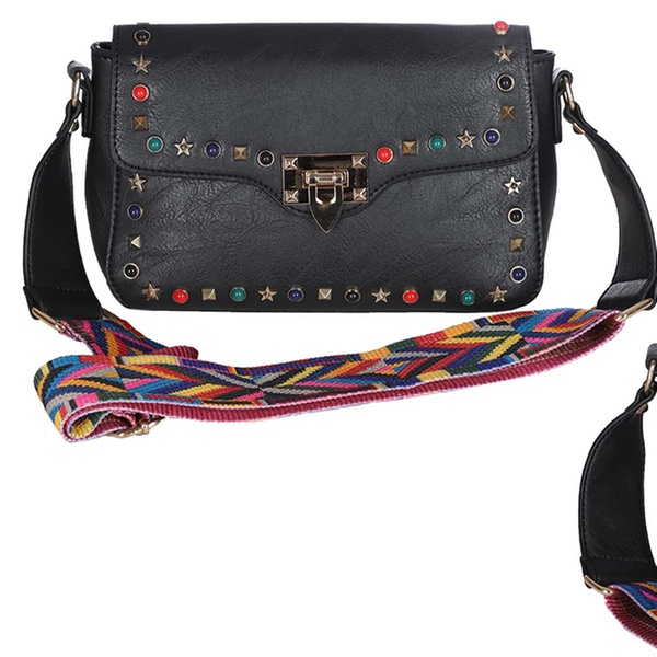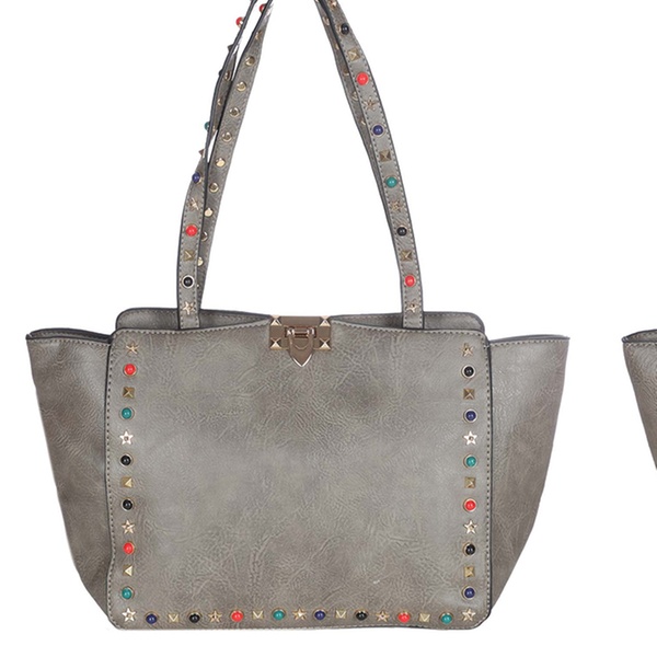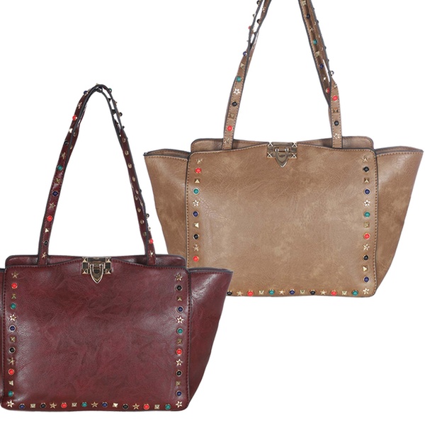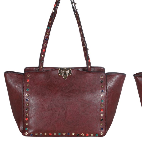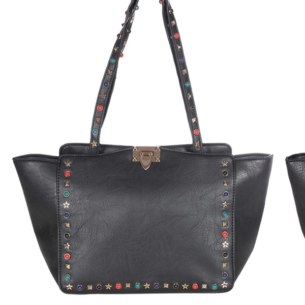Stilvolle Damen-Tasche im Leder-Look mit dekorativen Strasssteinen