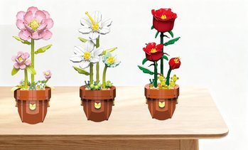 Topfblumen-Baustein-Set mit Hibiskus, Lilie oder roter Rose