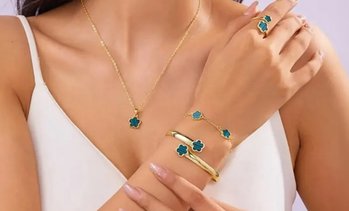 5-teiliges Schmuck-Set mit fünfblättrigem Kleeblatt-Muster in Grün,...