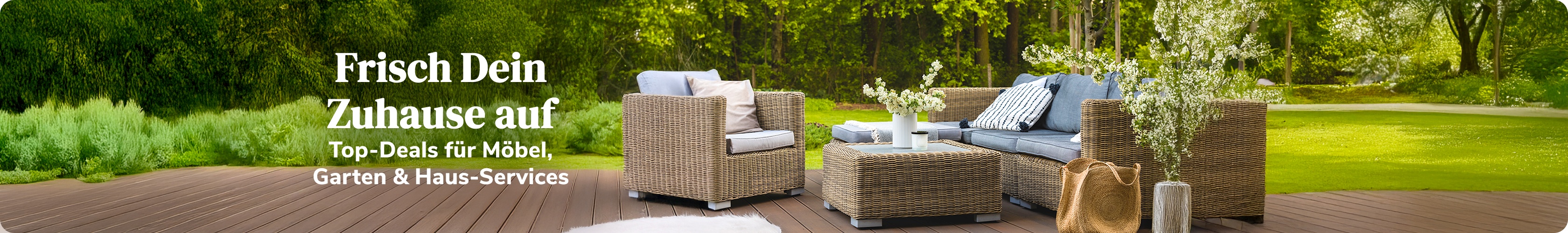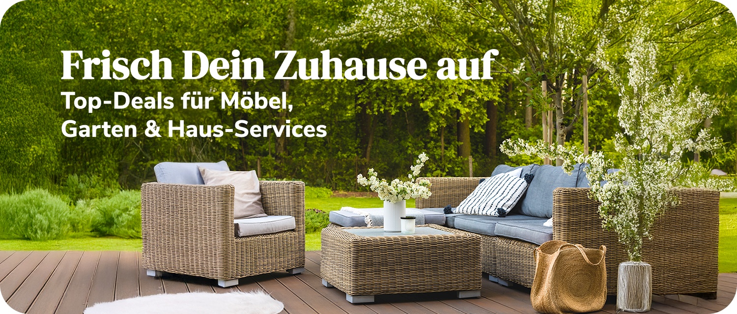 Egal, ob Sie Ihren Garten neu gestalten, Wohnräume aufwerten oder praktische Services buchen möchten – mit vertrauenswürdigen lokalen Anbietern und hochwertigen Produkten macht Groupon es einfach, Zeit zu sparen und das Zuhause frisch und einladend zu gestalten.