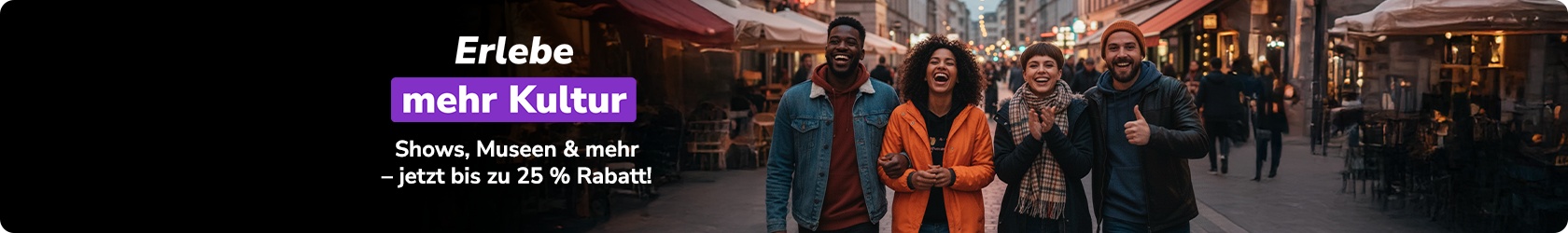 Mit Deals für Museen, Galerien, Festivals und Shows kannst du Kultur ganz neu erleben, ohne dein Budget zu sprengen. Lass dich begeistern von Comedy-Abenden, Filmvorführungen, Zirkusshows oder familienfreundlichen Events.