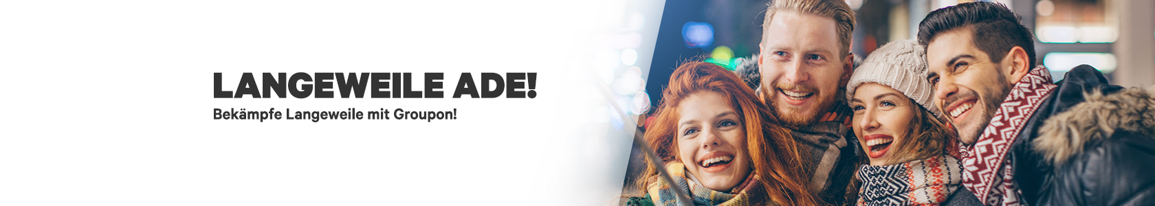Groupon bietet Dir hohe Rabatte und inspiriert Dich, Deine Stadt neu zu entdecken. Bei uns findest Du Deals für Restaurants, Beauty, Tickets, Reisen, Produkte und mehr! Entdecke die besten Geschenkideen mit Groupon: finde großartige Black Friday, Geschenke zum Muttertag, Geschenkedeals für Sie und Ihn, Geschenke für Paare, zum Geburtstag und erschwingliche Geschenke.
